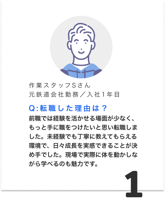 当社には10年以上の経験を持つベテランスタッフが多数在籍しています。初めての方でも安心して業務を学べ、作業のコツや効率の良い進め方も丁寧に教えてもらえます。チームで協力しながら作業できるため、安心してスキルを身につけられる環境です。